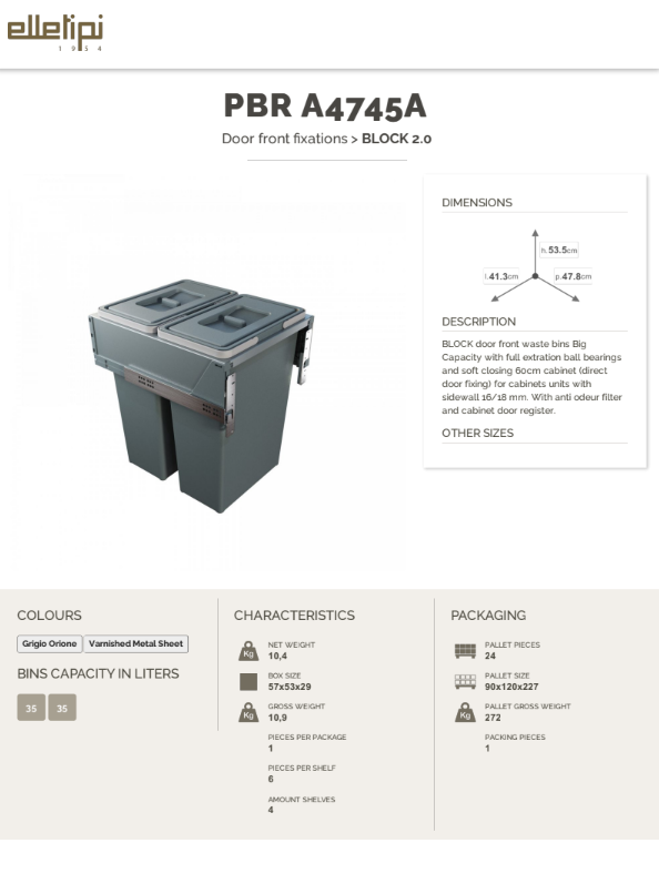 BLOCK është një sistem modern koshi mbeturinash i projektuar për të maksimizuar hapësirën dhe për t’u përshtatur me formate të ndryshme kabinetesh. Dizajni i tij praktik dhe funksional siguron organizim efikas dhe përdorim afatgjatë në çdo kuzhinë.