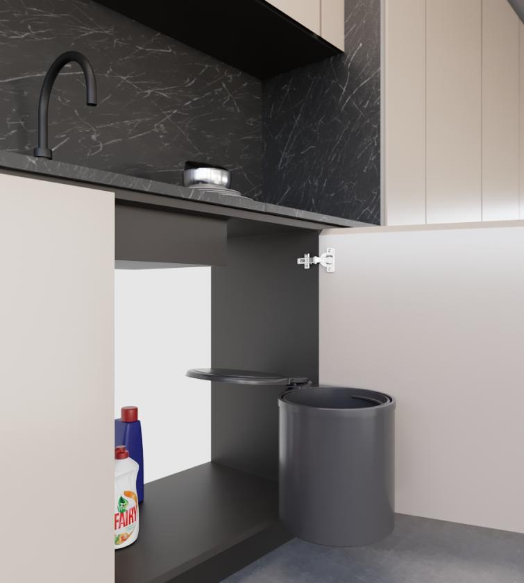 Shporta montuese e rrumbullakët për mbeturina – prodhim italian, me cilësi të lartë dhe dizajn funksional. Montim i lehtë në dollapët e kuzhinës, duke ofruar zgjidhje praktike dhe higjienike për hedhjen e mbeturinave.