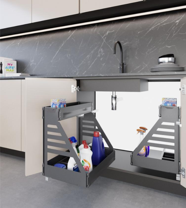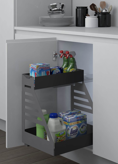 Mbajtëse Detergjenti me Dy Nivela – Sistem Tërheqës për Mobilie 45 cm+