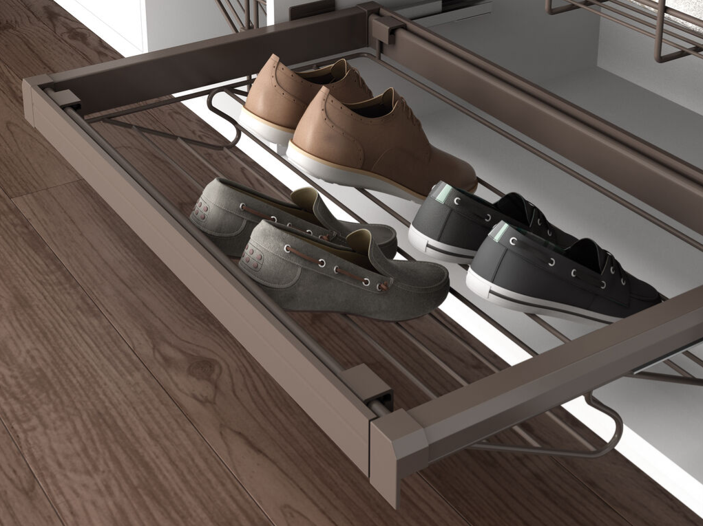 Zgjidhja perfekte për organizimin elegant dhe praktik të këpucëve në garderobën tuaj. Ky sistem inovativ italian vjen me një strukturë të fortë metalike, mekanizëm tërheqës të butë dhe dizajn minimalist që i përshtatet çdo hapësire moderne.
