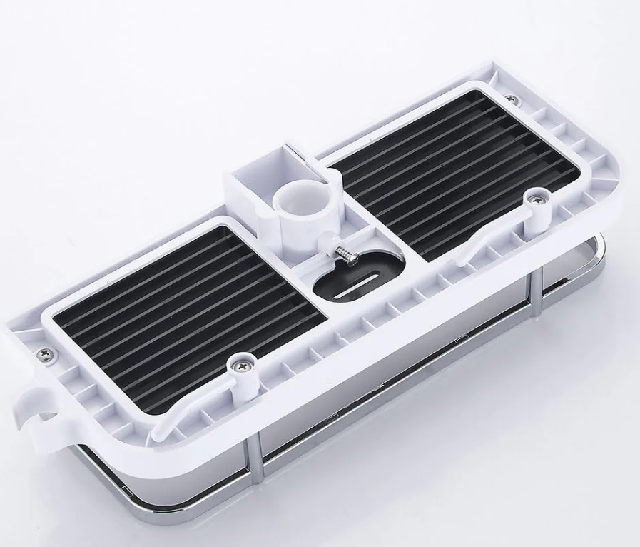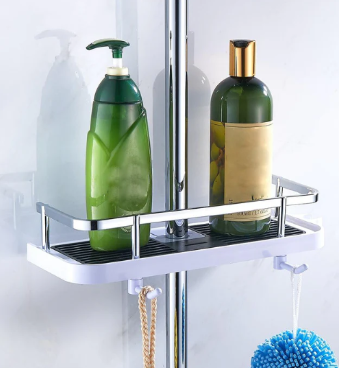 Mbajtëse praktike për shampona dhe produkte të tjera të banjës, që fiksohet lehtësisht në murin e dushit pa nevojë për vrima. Mbani gjithçka organizuar dhe brenda shtrëngesës, duke kursyer hapësirë dhe duke e bërë banjën më të rregullt dhe funksionale.