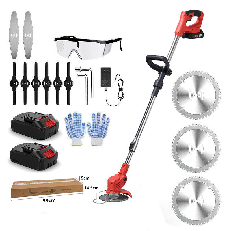 Përfshin fletë prerëse metalike dhe kokë për prerje barishte