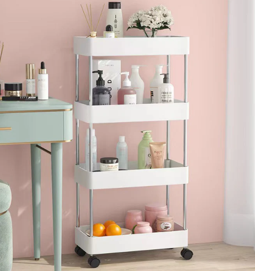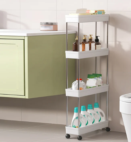 Organizim praktik dhe fleksibël për çdo hapësirë! Ky raft i bardhë me rrota lejon lëvizje të lehtë, duke ju mundësuar të rregulloni dhe ruani sende të ndryshme pa mundim. Dizajn kompakt dhe modern, i qëndrueshëm dhe i përshtatshëm për shtëpi, zyrë apo banjë.