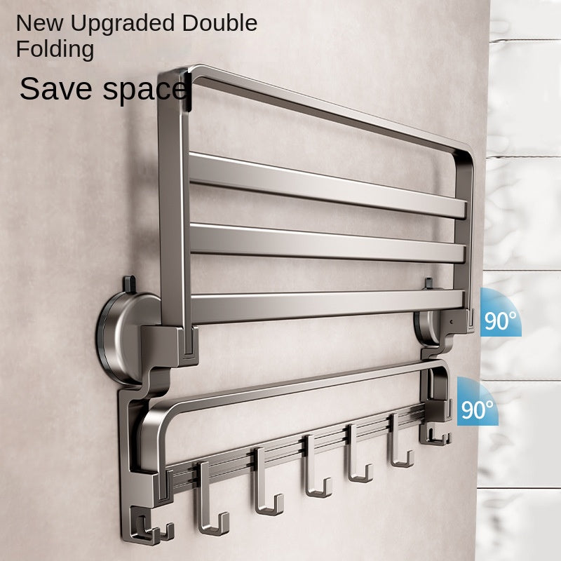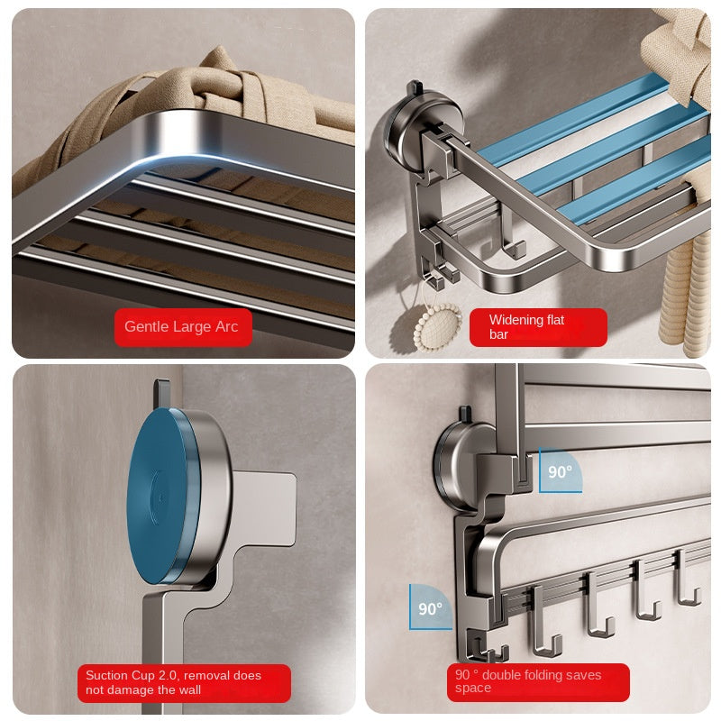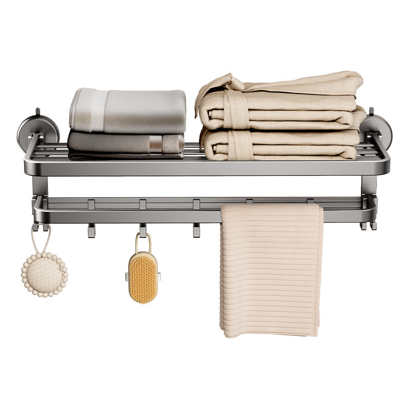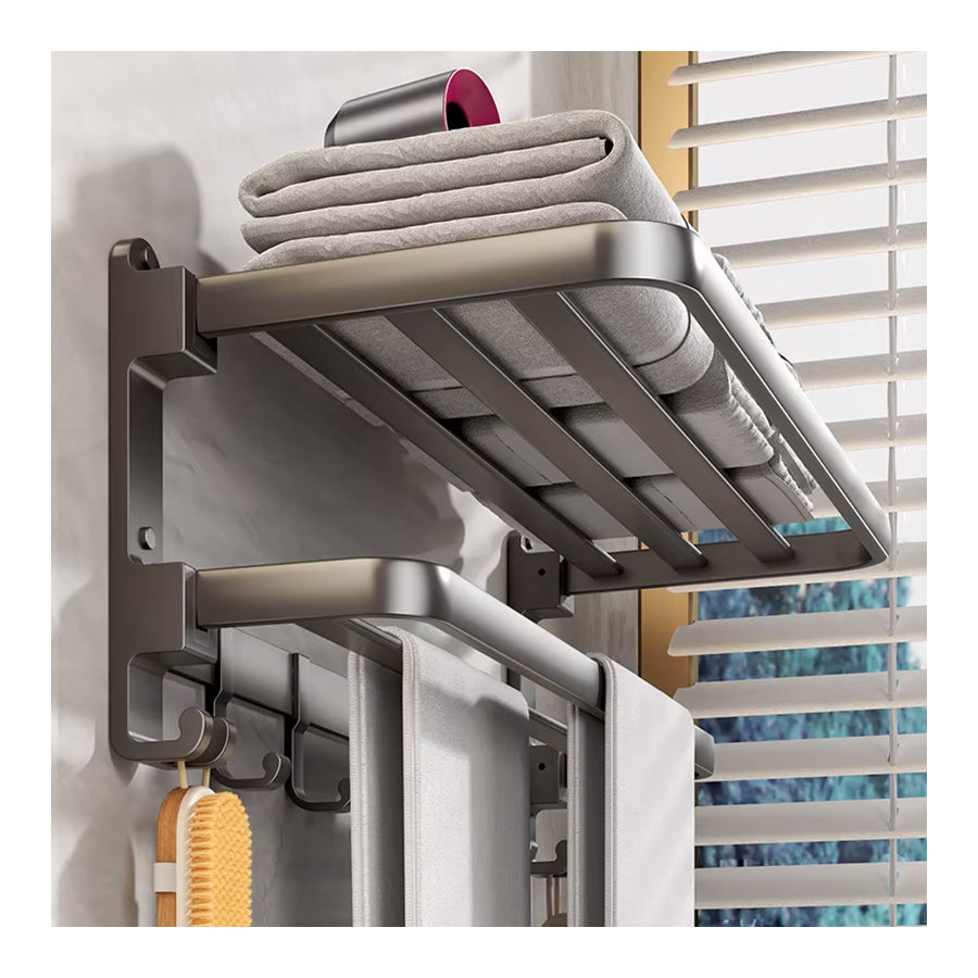 Organizim dhe stil në një produkt! Ky raft metalik prej alumini rezistent ndaj lagështirës ofron një hapësirë të bollshme për peshqirë dhe rroba, me grepa të integruar për aksesorë. Dizajn modern, montim në mur dhe kursim maksimal i hapësirës – ideal për çdo banjo moderne.