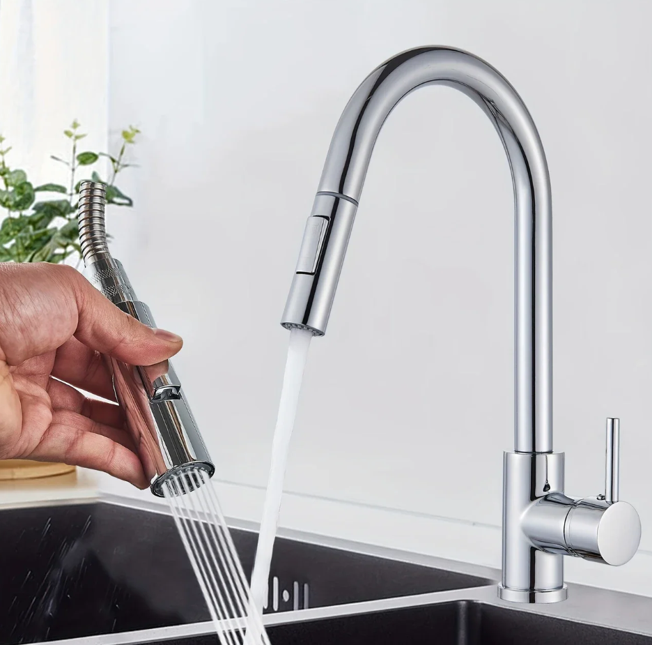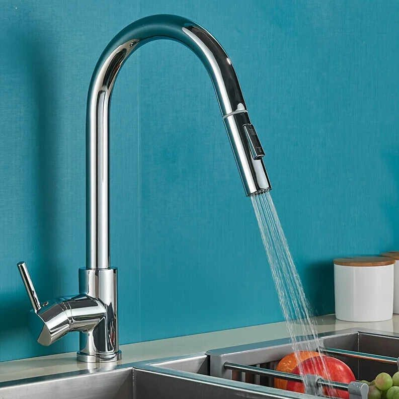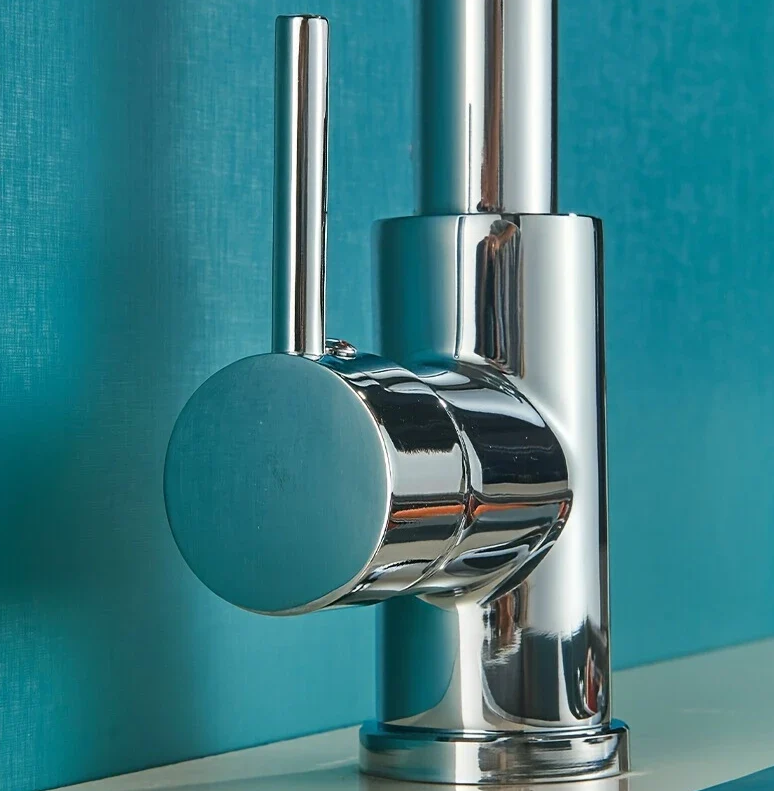 Ky rubinet në ngjyrë krom është një zgjedhje klasike që i jep kuzhinës suaj një ndjesi moderniteti dhe pasqyrimi luksoz.